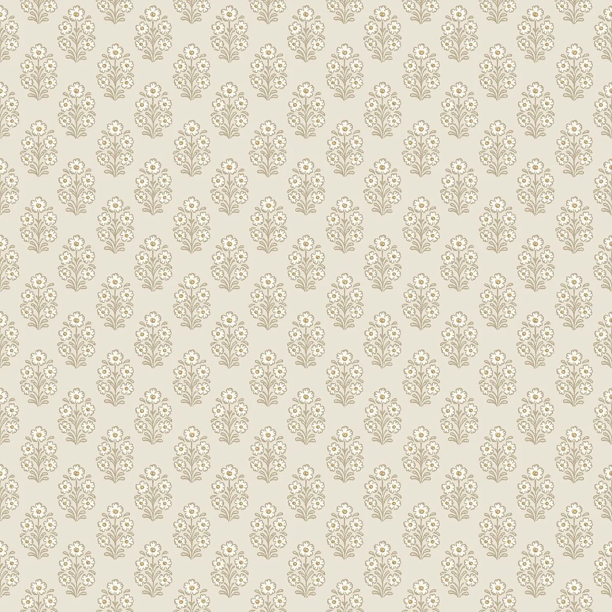 Na powierzchni tapety pojawiają się małe bukiety kwiatów rozmieszczone w równym, rytmicznym układzie. Dzięki drobnej skali wzoru tapeta tworzy spokojną powierzchnię ściany i może być stosowana zarówno na jednej ścianie, jak i w całym pomieszczeniu.