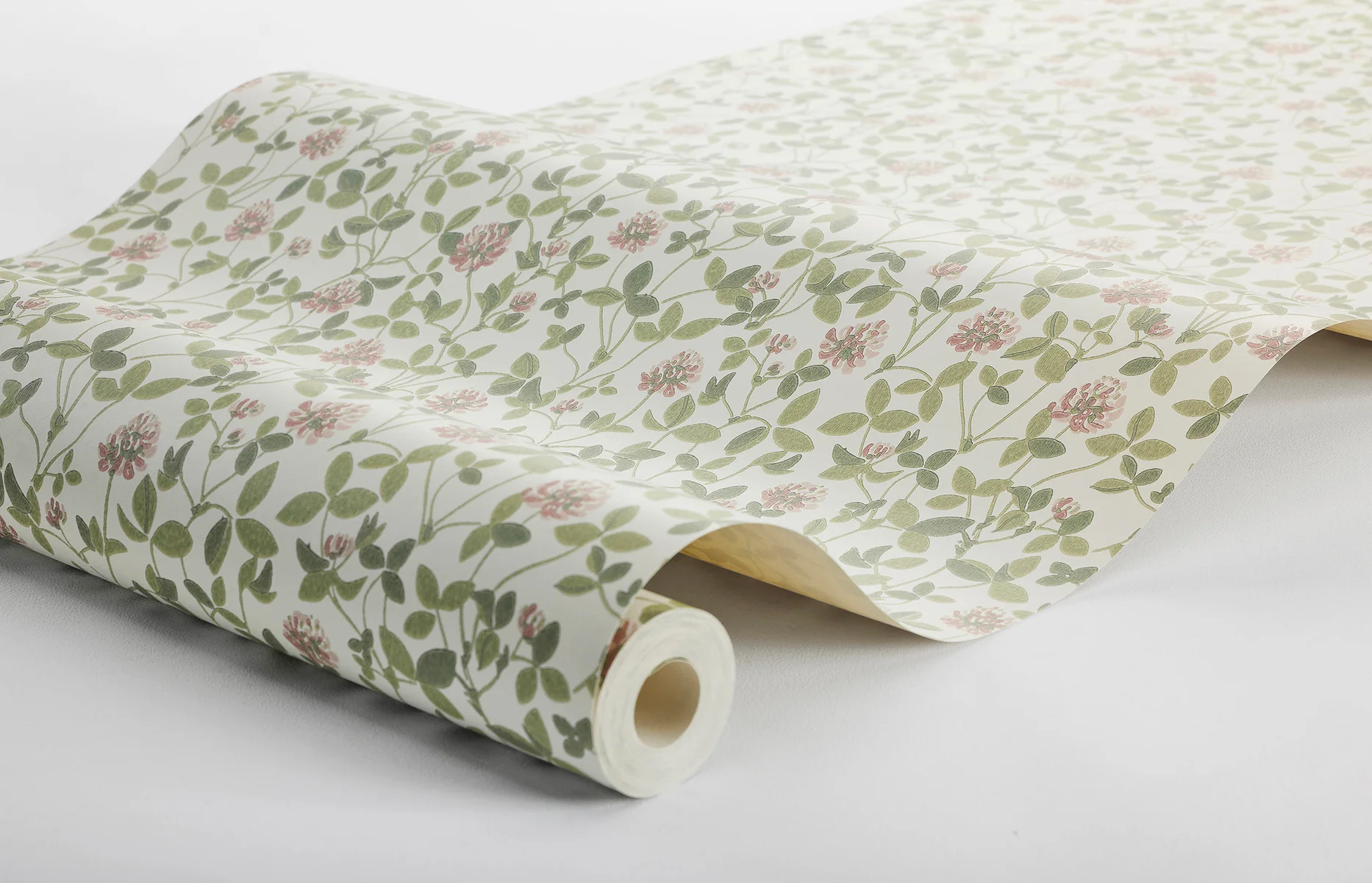 Boråstapeter Klöver 6978 to flizelinowa tapeta z drobnym, powtarzalnym wzorem liści i kwiatów na jasnym tle. Mały raport wzoru minimalizuje widoczność łączeń pasów. Produkt przeznaczony do montażu w pomieszczeniach mieszkalnych o standardowej wilgotności.