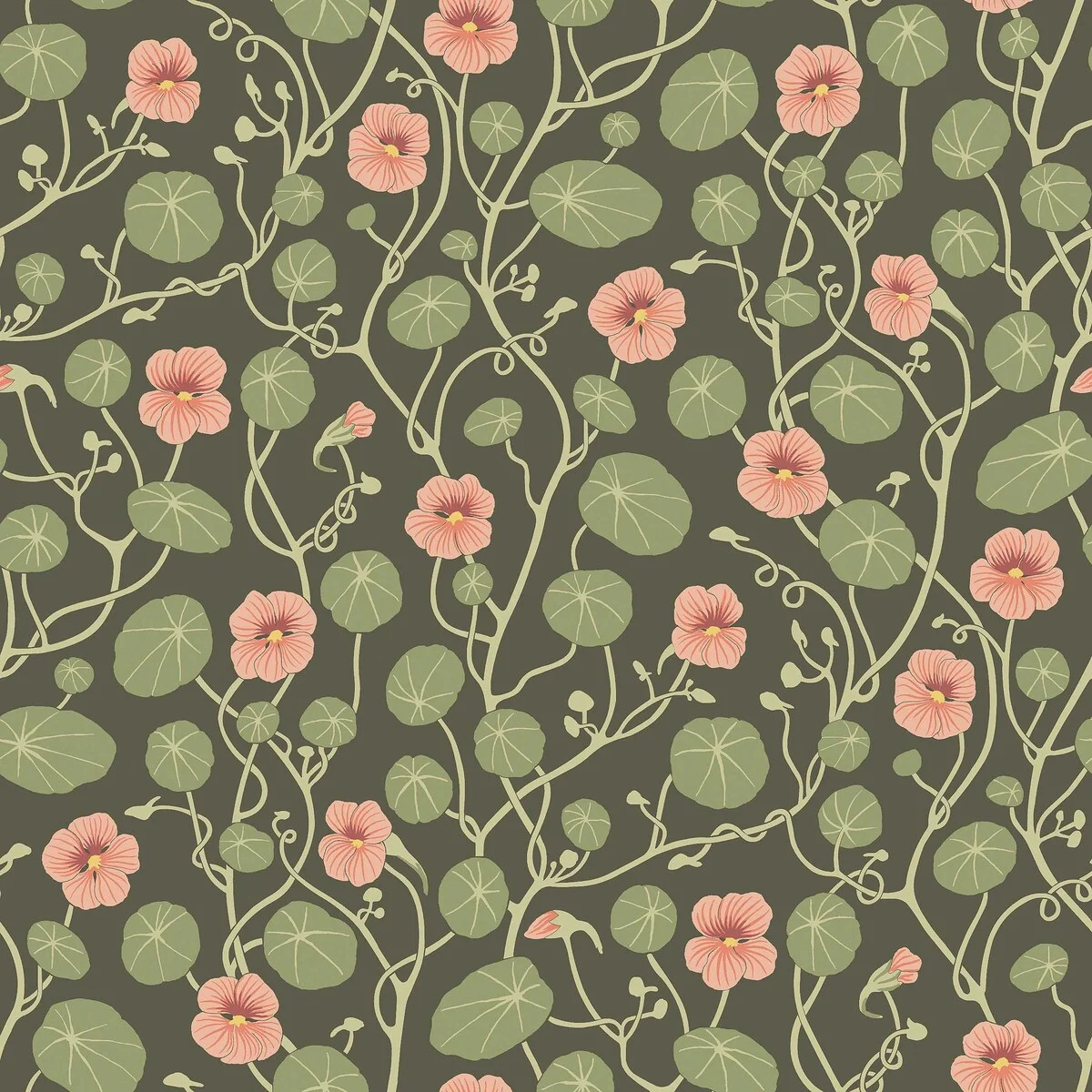 Boråstapeter Krasse 6976 to flizelinowa tapeta z drobnym, powtarzalnym wzorem kwiatów i liści na ciemnym zielonym tle. Mały raport wzoru sprawia, że łączenia pasów są niemal niewidoczne. Produkt przeznaczony do montażu w pomieszczeniach mieszkalnych o standardowej wilgotności.