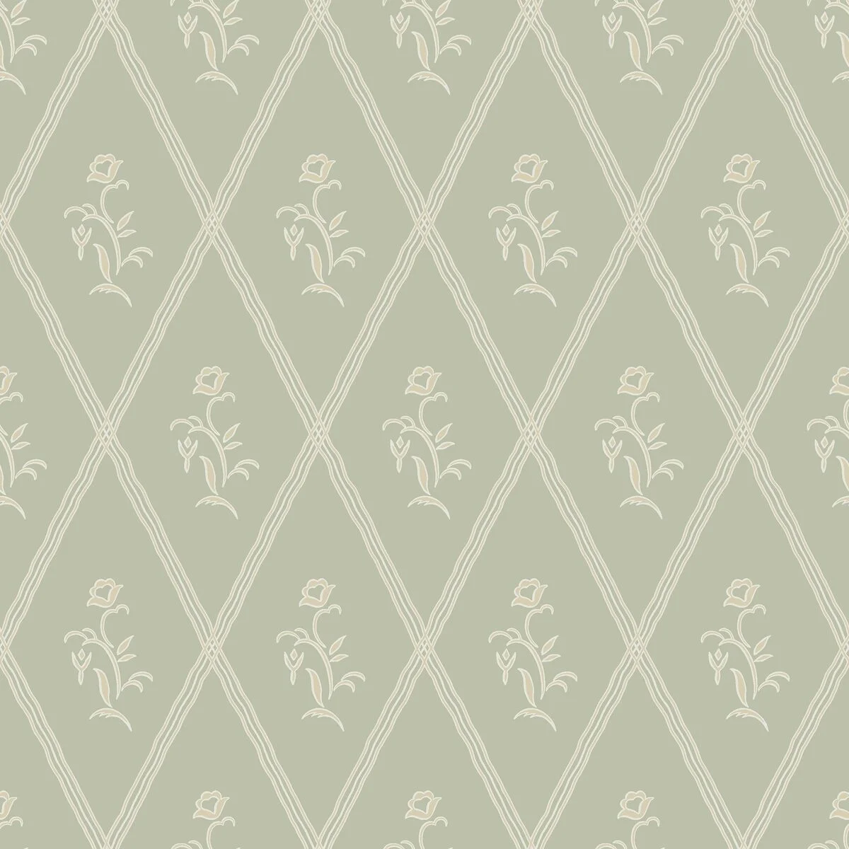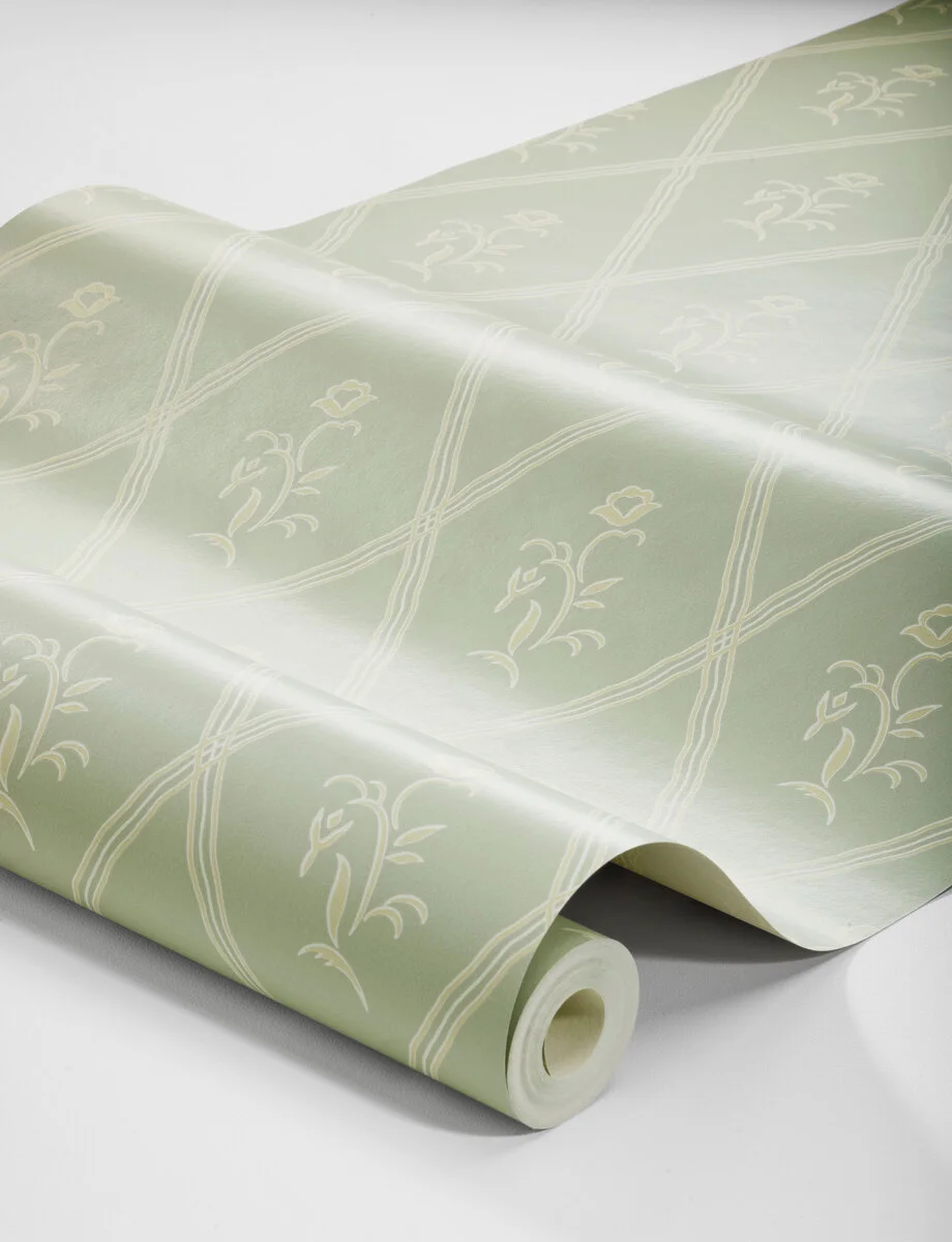 Tapeta Signe 5508 marki Boråstapeter pochodzi z kolekcji Swedish Grace. Wzór łączy motyw kratki (trellis) z drobnymi kwiatami, które pojawiają się w punktach przecięcia linii. Dzięki temu powstaje lekka, geometryczno-roślinna kompozycja.