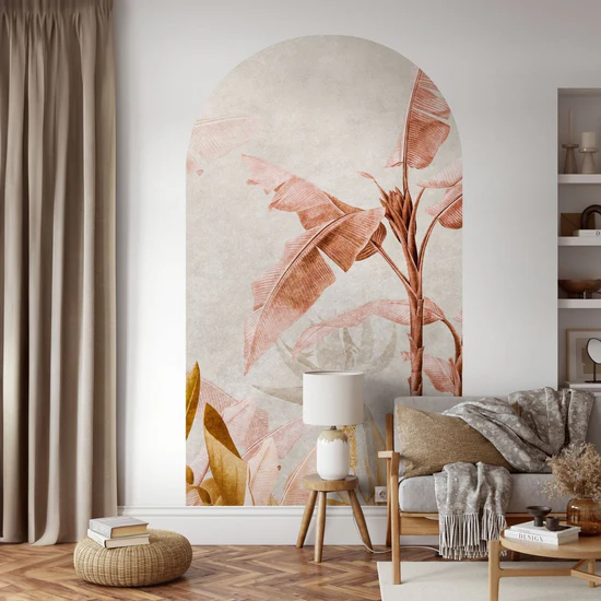 Samoprzylepna tapeta w łuku producenta Wall Art to stylowa dekoracja ścienna o naturalnym, botanicznym charakterze z artystycznym wykończeniem. Grafika przedstawia tropikalne liście i pędy w odcieniach pomarańczowych, terakotowych i ciepłych neutralnych tonach, które subtelnie przeplatają się z pastelowym tłem. Motyw inspirowany naturą tworzy efekt spokojnej, lecz wyrazistej kompozycji, która wprowadza do wnętrza ciepło, harmonię i lekkość.