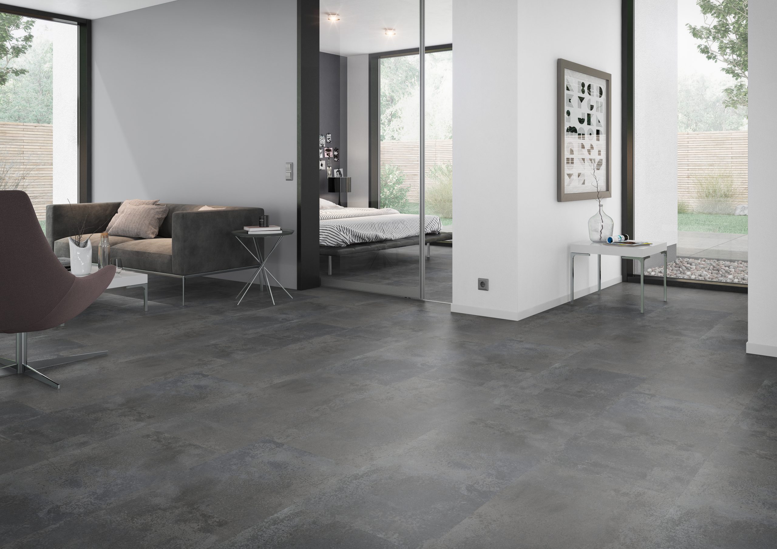 Element w formacie płytki pozwala szybko pokryć większą powierzchnię i uzyskać równą, „betonową” taflę. To nowoczesne produkty o wyrazistym, mineralnym charakterze.