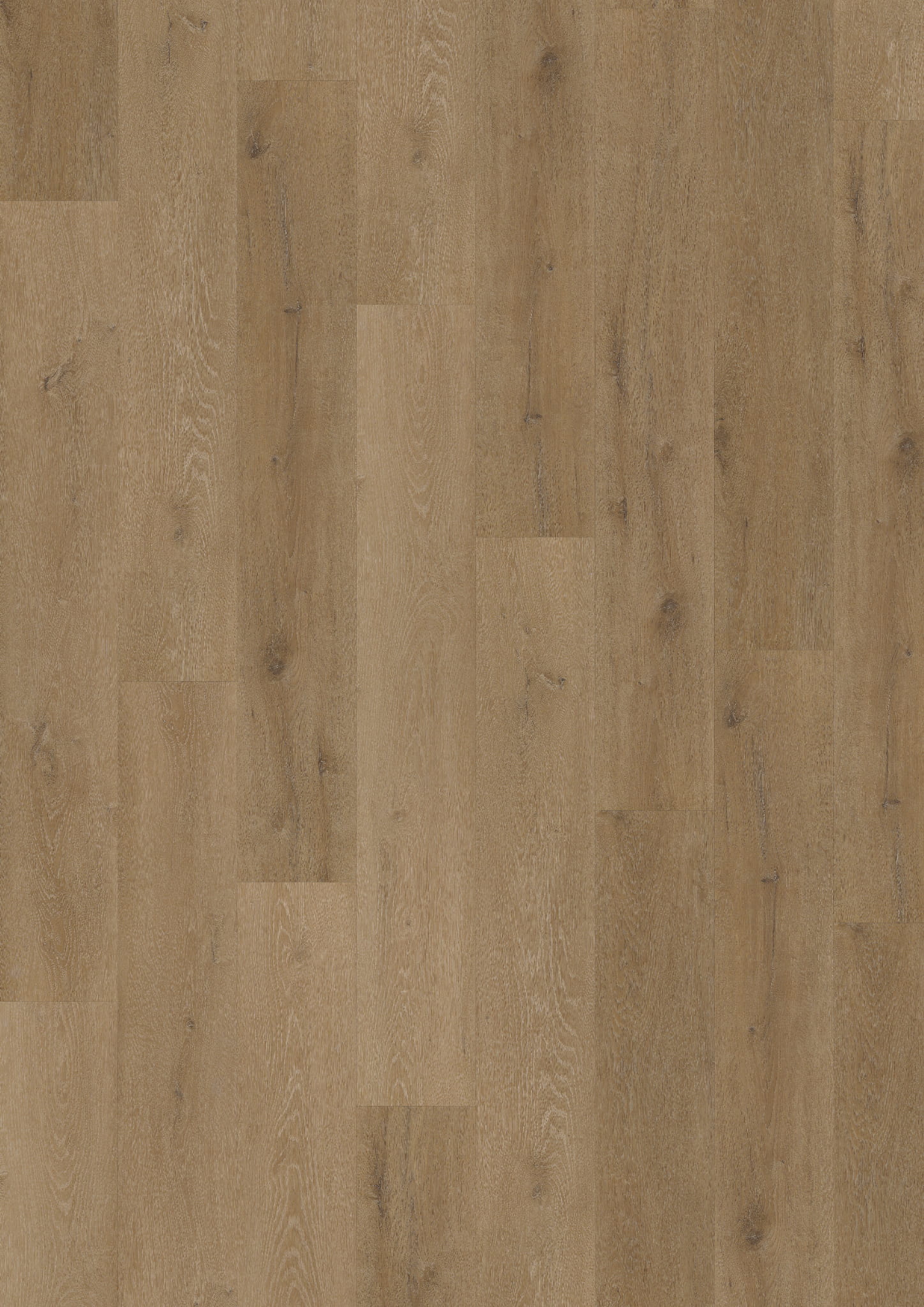 Winyle o miodowym odcieniu z lekko zarysowanymi, falującymi pasmami słojów. Rozproszone sęki i delikatne smugi nadają powierzchni głębię, ale nie zaburzają równomiernego rytmu desek. Całość prezentuje się spokojnie i jednolicie na większych płaszczyznach.