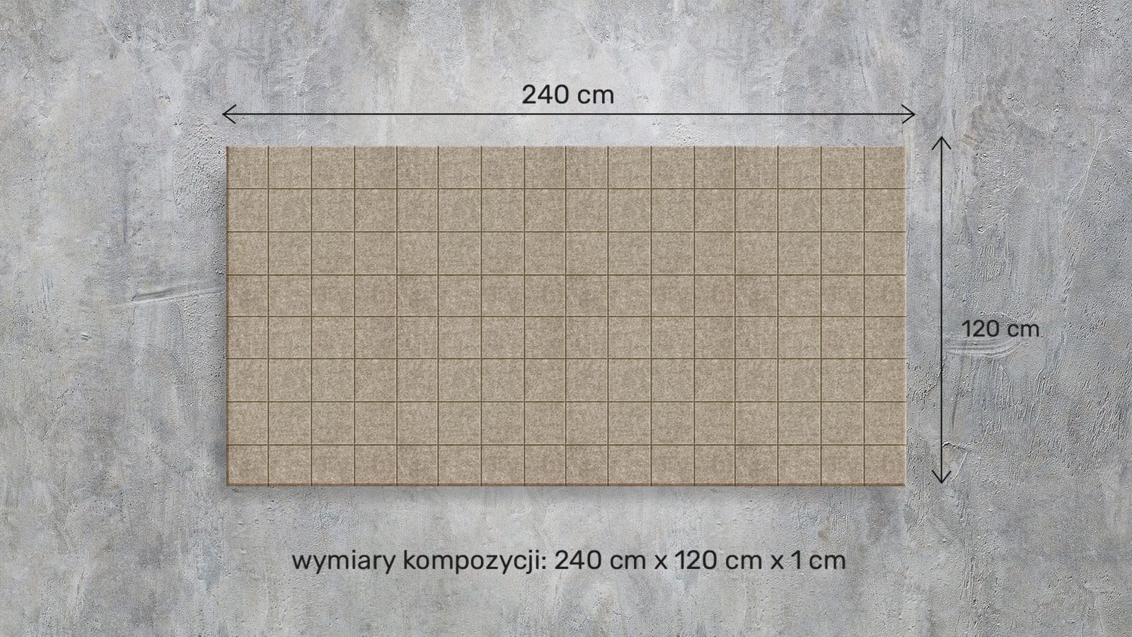 - Wymiary całkowite aranżacji: 240 cm x 120 cm x 1 cm