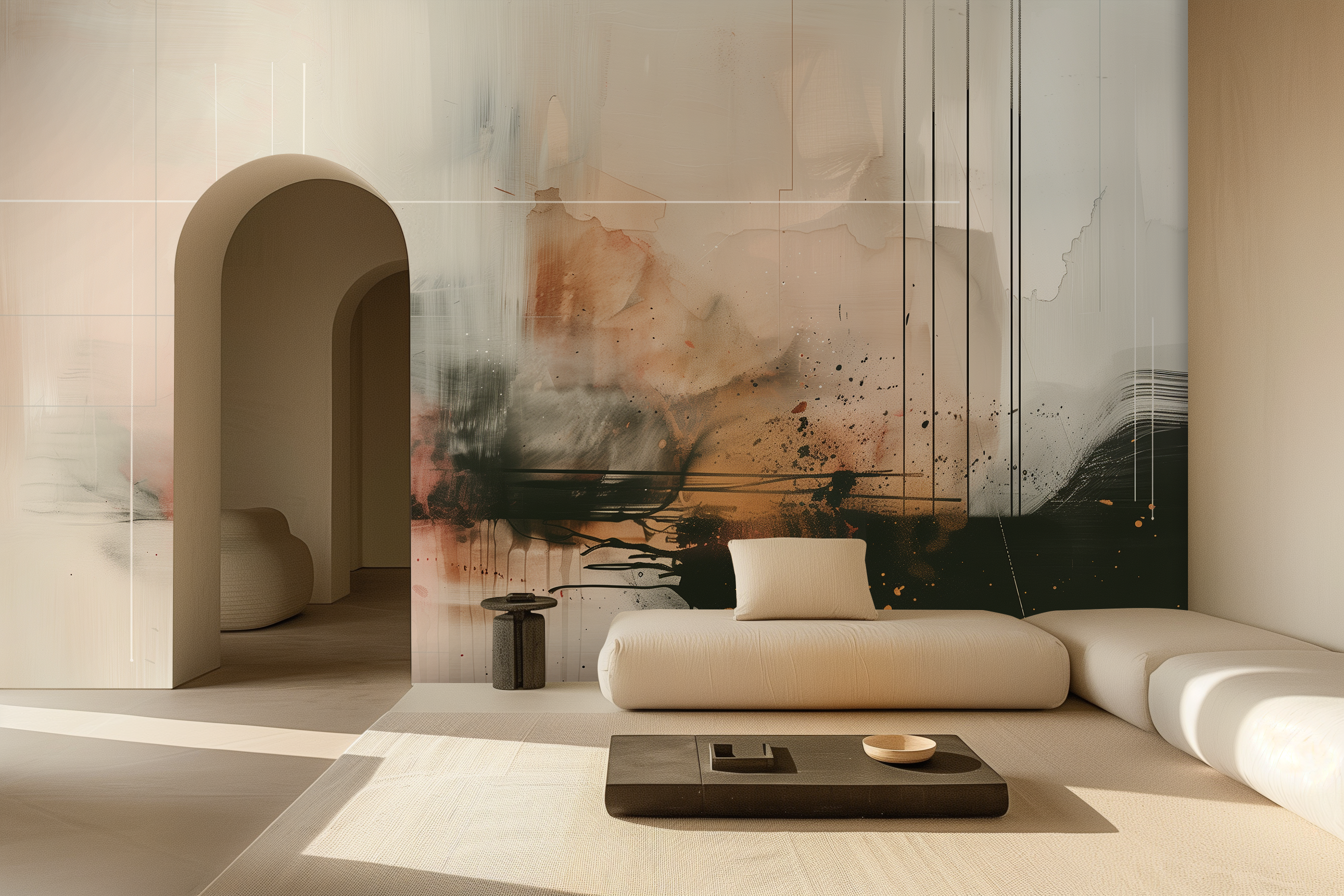 Mural Reve Moderne Fantome MF204 to wyjątkowe dzieło sztuki, które zachwyca subtelnością form i bogactwem tekstur. Abstrakcyjny wzór łączy delikatne odcienie beżu, różu i brązu z głęboką czernią i akcentami szarości. Dynamiczne linie i plamy, przypominające rozproszone pociągnięcia pędzla, nadają kompozycji wyjątkowej głębi. Wzór emanuje nowoczesnością i elegancją, idealnie wpisując się w wyrafinowane wnętrza. "Moderne Fantome MF204" przyciąga wzrok, intryguje i inspiruje, dodając każdemu wnętrzu niepowtarzalnego charakteru..