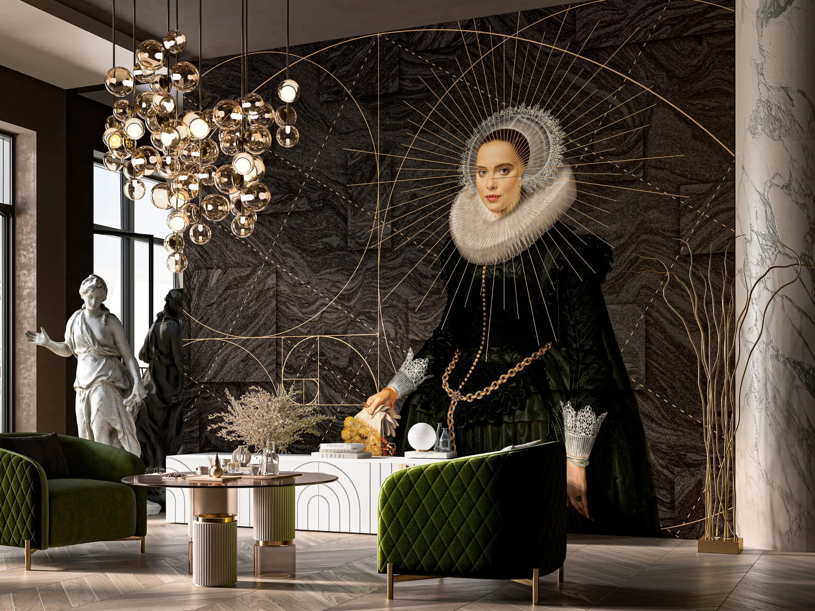 Standardowy wzór tapety ma wymiary 400×300 cm i sprzedawany jest w rolkach 100×300 cm.