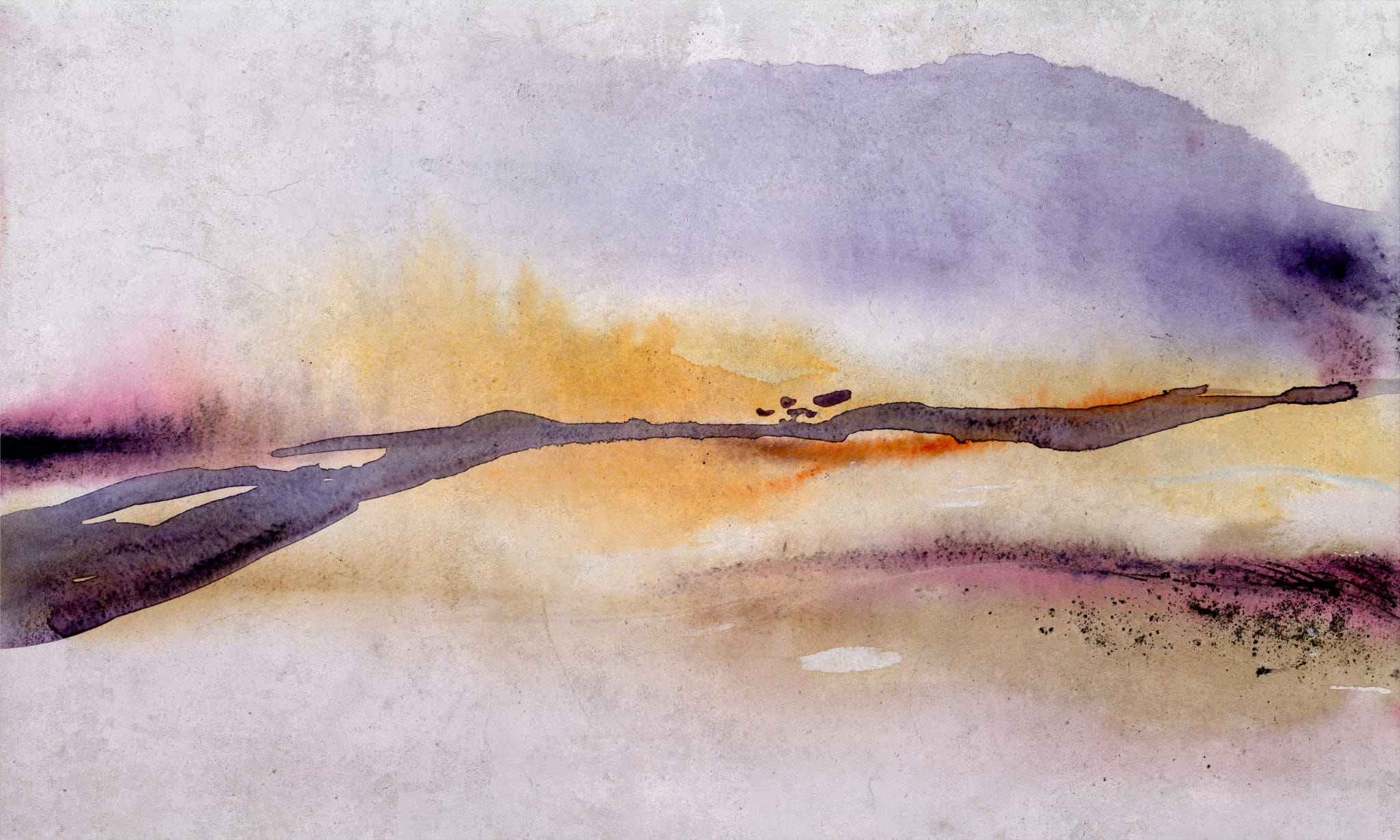 Tapeta Wonderwall Ambre to wyjątkowy mural o artystycznym charakterze, który zachwyca subtelnym przejściem kolorów i malarską ekspresją. Kompozycja przypomina pejzaż inspirowany zachodem słońca, gdzie ciepłe odcienie bursztynu, złota i fioletu łączą się w harmonijną całość. Delikatne rozmycia i akwarelowe pociągnięcia pędzla nadają wnętrzu głębi i spokoju. Ta tapeta Wonderwall to doskonały wybór dla miłośników abstrakcyjnych wzorów i eleganckiego minimalizmu.