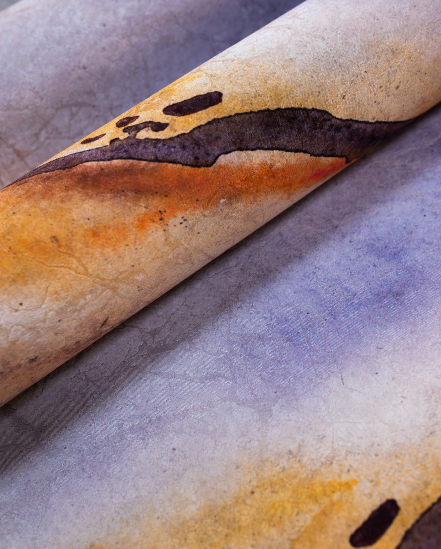 Wonderwall tapeta do sypialni Ambre to doskonały wybór dla osób, które pragną stworzyć przestrzeń sprzyjającą relaksowi. Delikatne, ciepłe odcienie bursztynu i fioletu nadają wnętrzu przytulności, jednocześnie zachowując elegancki i artystyczny styl. Tapeta świetnie współgra z jasnymi tkaninami i nowoczesnym oświetleniem.