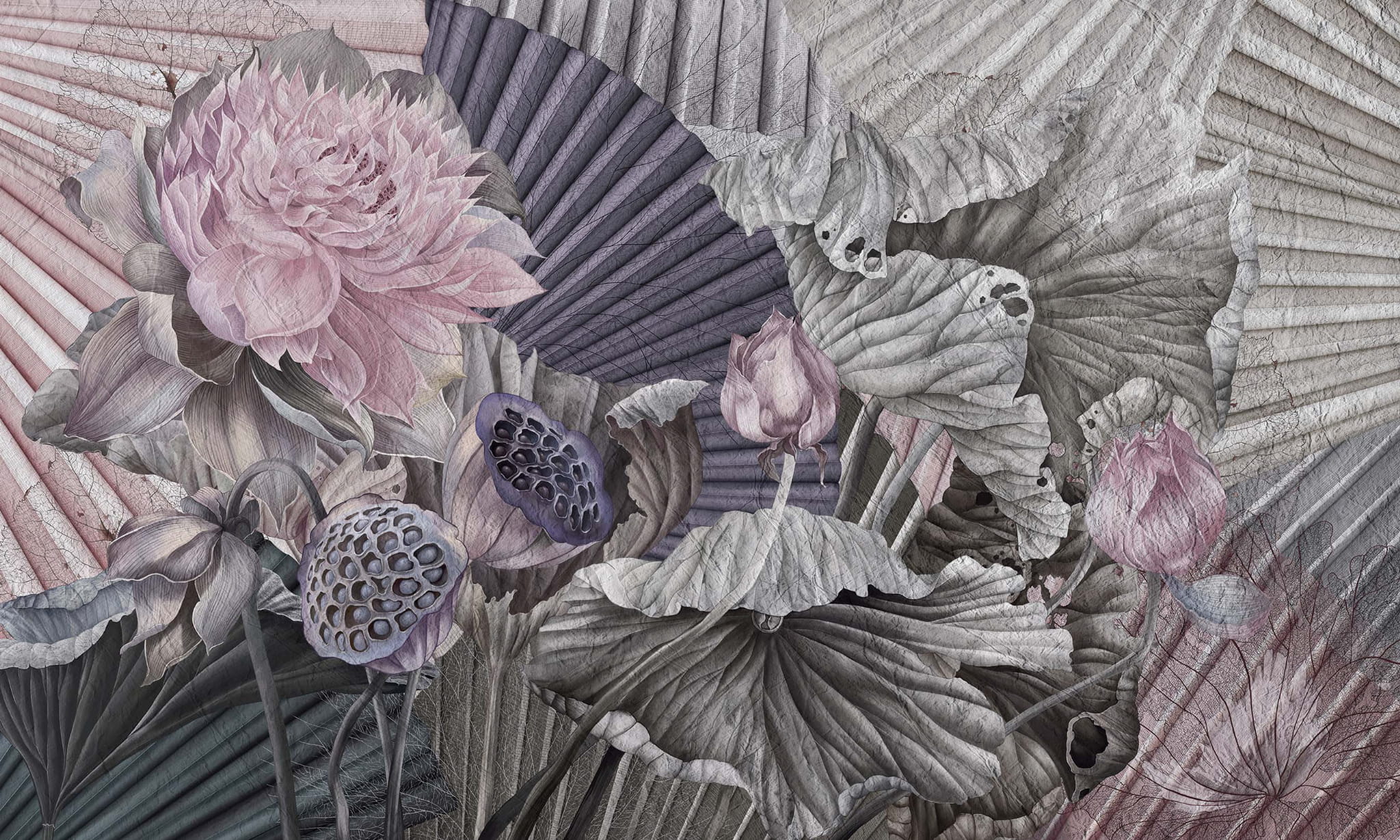 Wonderwall tapeta Tiffani to mural, który zachwyca bogatym, kwiatowym wzorem w pastelowych odcieniach różu, fioletu i szarości. Delikatne liście lotosu i kwiaty zdobiące tapetę tworzą kompozycję pełną subtelności i harmonii. To doskonały wybór dla osób, które pragną wprowadzić do swojego wnętrza element natury w wyrafinowanej formie. Fototapeta Wonderwall dostępna jest w wymiarach standardowych 500 x 300 cm, ale istnieje możliwość dopasowania jej do indywidualnych potrzeb, co czyni ją uniwersalnym rozwiązaniem do każdego rodzaju przestrzeni.