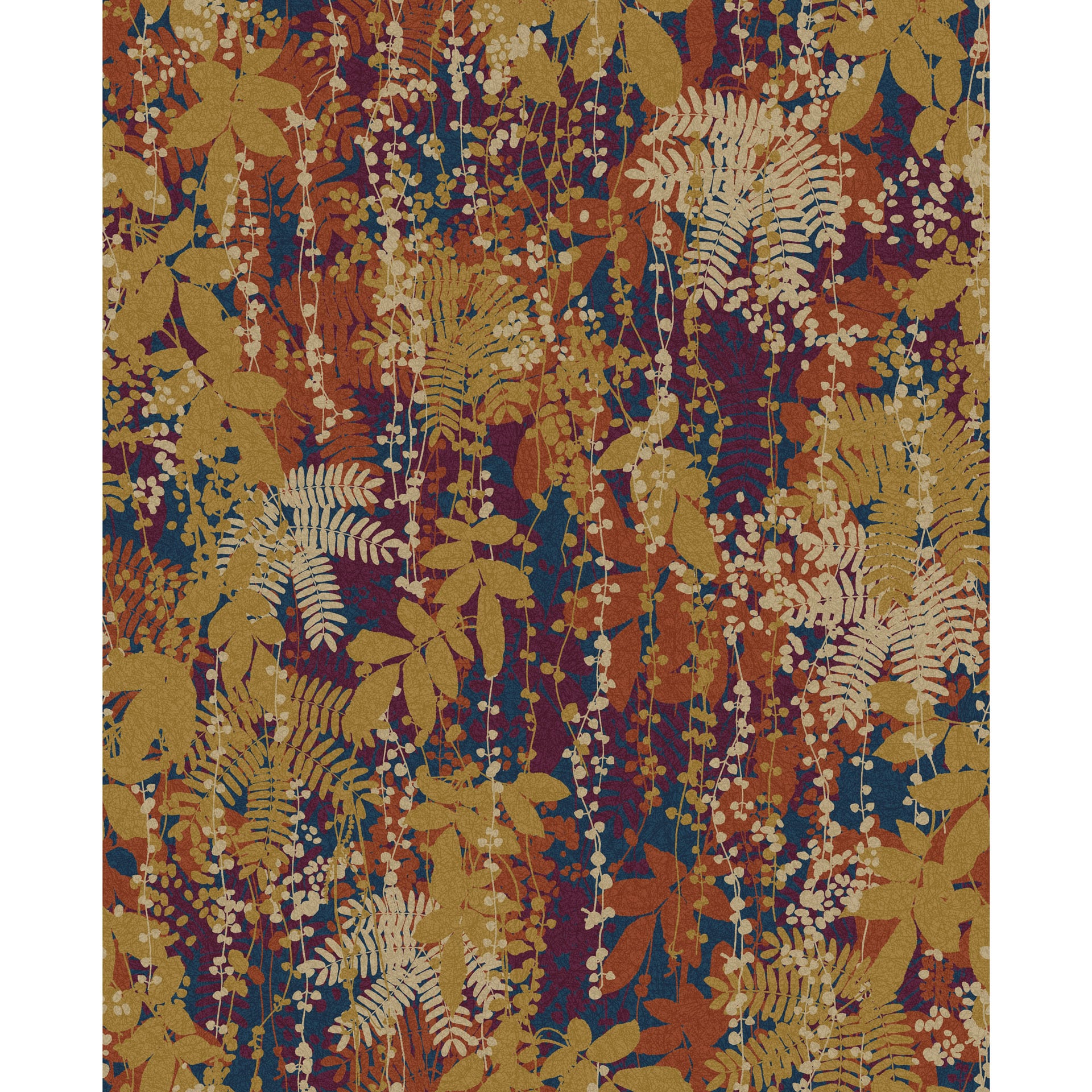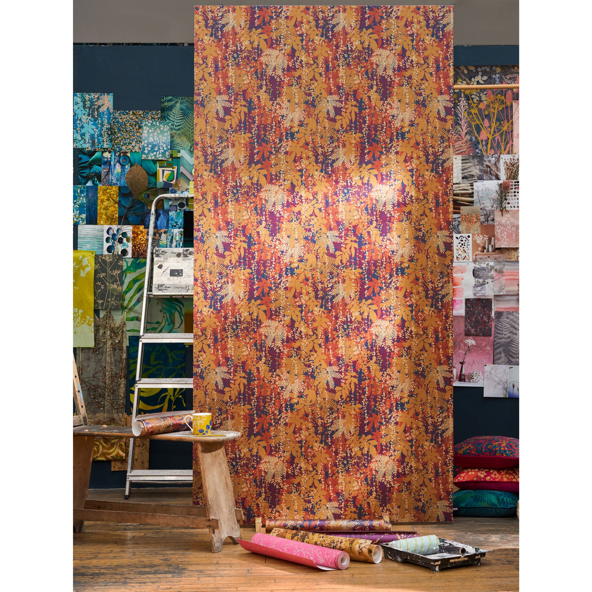 Tapeta Canopy w jesiennej kolorystyce uchwyciła dynamiczną elegancję natury. Clarissa została oczarowana skomplikowanymi wzorami leśnego baldachimu podczas spacerów po lasach Wiltshire. Twoje oczy będą przyciągane do bujnego listowia tej urzekającej tapety, gdzie każdy liść, łodyga i pnącze nakładają się na siebie, tworząc wyjątkowe wzory.