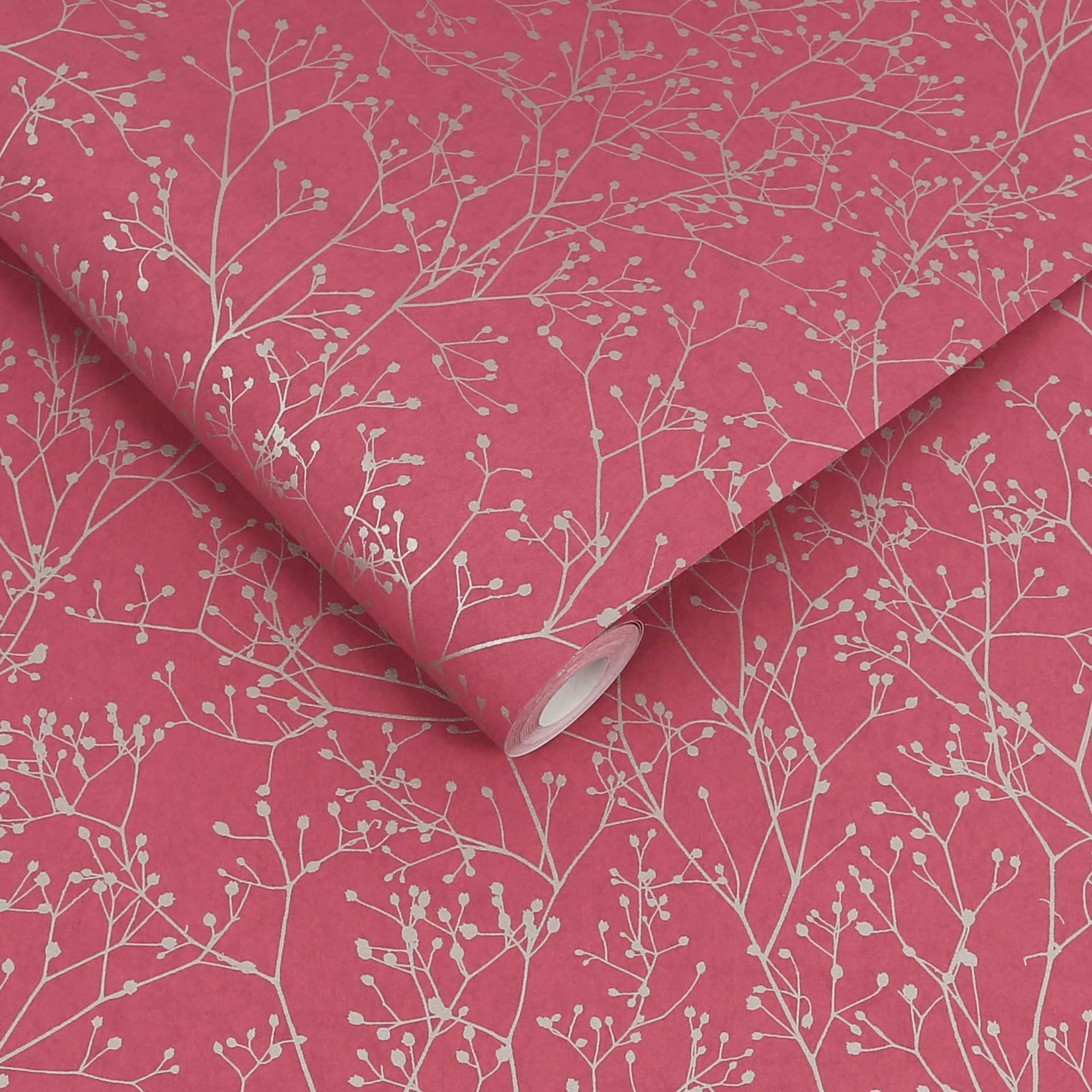 Tapeta Clarissa Hulse GYPSOPHILA WALLPAPER – RASPBERRY & SILVER 120398