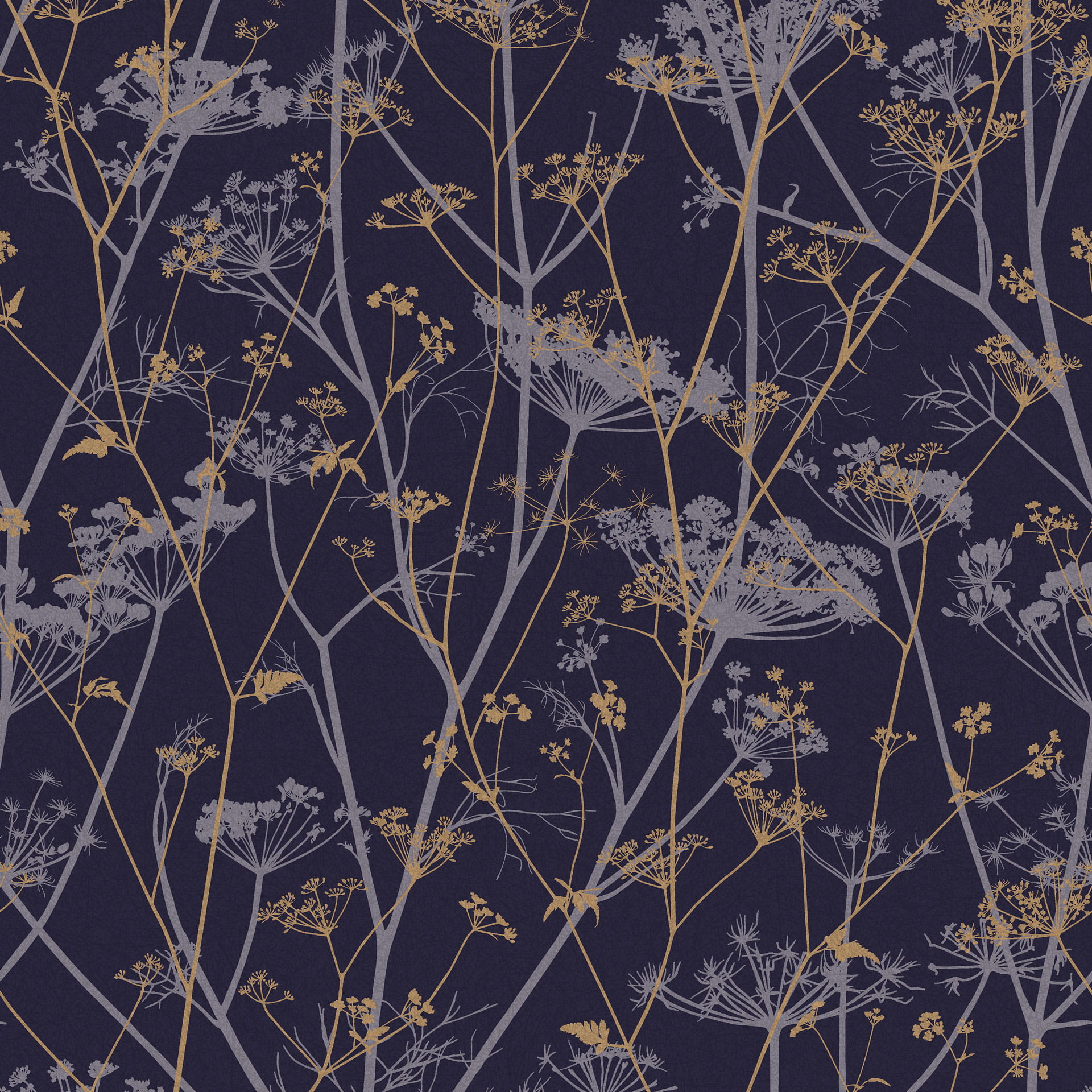 Tapeta Clarissa Hulse WILD CHERVIL WALLPAPER – BLACKBERRY & GOLD 120399