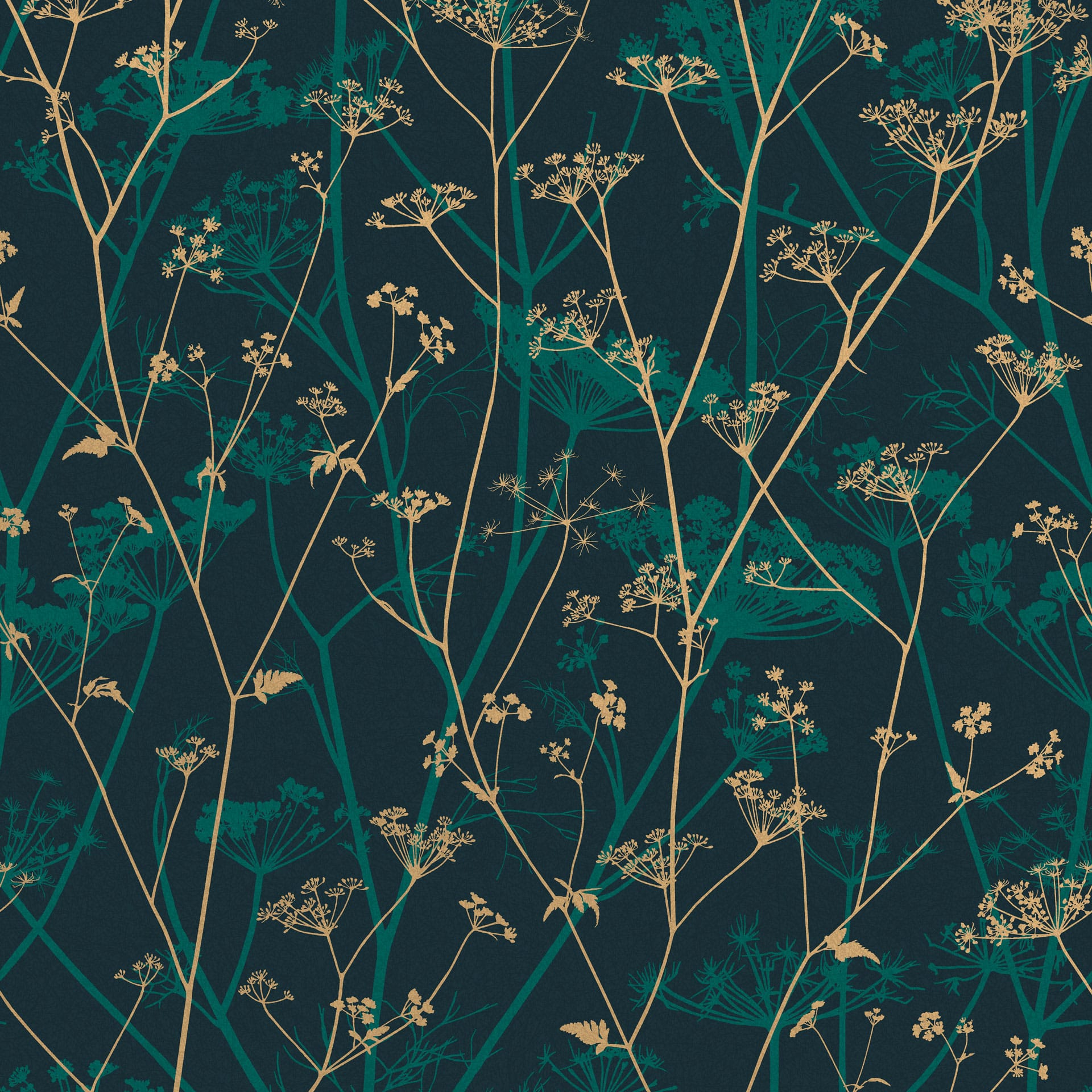 Tapeta Clarissa Hulse WILD CHERVIL WALLPAPER – KINGFISHER & GOLD 120394