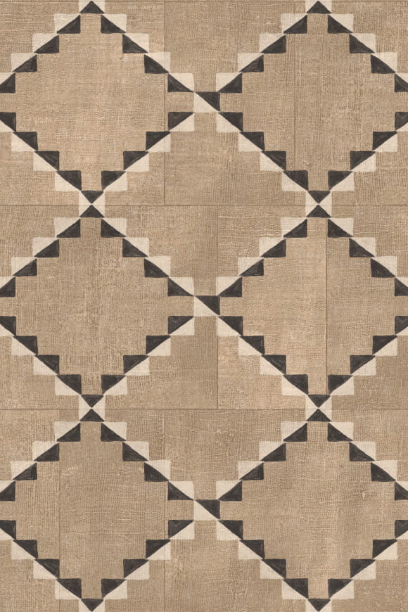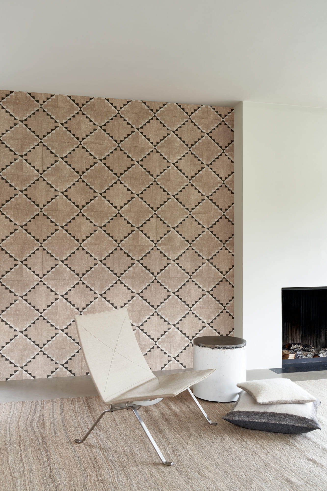 Tapeta Janela z kolekcji Gitane zaskakuje geometrycznym wzorem na tle przypominającym lnianą tkaninę. Projekt jest współczesną interpretacją rzemieślniczej blokowej drukarki na tekstyliach. Ten niepowtarzalny etniczny wzór ma unikalne, artystyczne wrażenie.