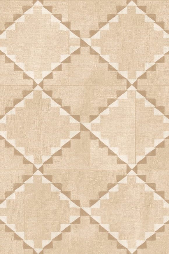Tapeta Janela z kolekcji Gitane zaskakuje geometrycznym wzorem na tle przypominającym lnianą tkaninę. Projekt jest współczesną interpretacją rzemieślniczej blokowej drukarki na tekstyliach. Ten niepowtarzalny etniczny wzór ma unikalne, artystyczne wrażenie.