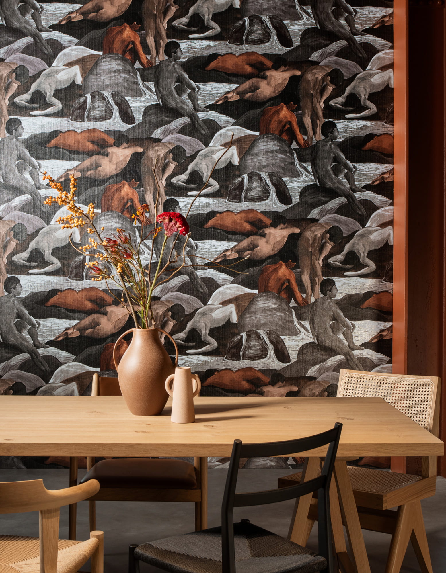 Wzór Saturnia z kolekcji Les Thermes to Toskańska wioska, która słynie z gorących źródeł od czasów rzymskich. Ta spokojna scena przedstawia ludzi kąpiących się w źródłach. Oprócz zapewniania ulgi, podstawowa technika fil-à-fil ze srebrną i złotą folią tworzy wyjątkowy połysk w wodzie. To prawdziwy kawałek oświadczenia!