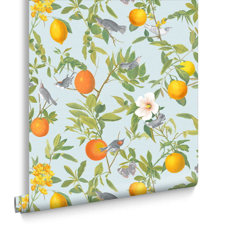 Kiedy życie daje ci cytryny, zrób lemoniadę - albo w przypadku Amalfi Cielo, limoncello. Typowy owoc południa Włoch, cytryna jest bohaterem tej tapety, która krzyczy "Włoskie lato". Soczyste liście cytryny, soczyste mandarynki i kwitnące kwiaty są przedstawione na wydrukowanej teksturze płótna, pięknie kontrastując z jasnoniebieskim tłem. Wzmacniana ptakami i motylami natury, świeża i owocowa paleta kolorów Amalfi mieszają się z prawdziwą wyrafinowaną wakacyjną atmosferą.
