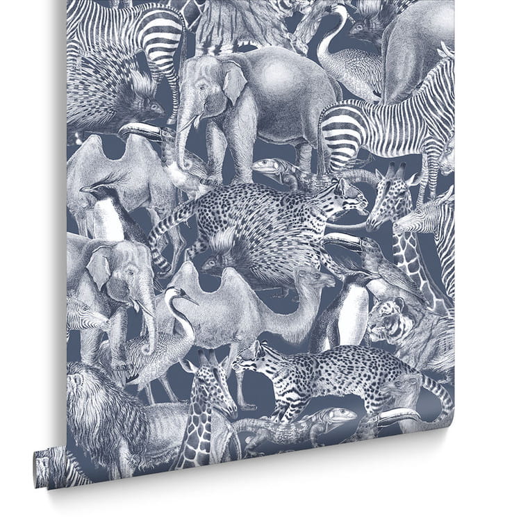 Zainspirowana naturalnym safari, Kingdom Gecko to ilustracja w stylu szkicu przedstawiająca całą dziką przyrodę, zarówno wielką, jak i małą. Od słoni i żyraf po wielbłądy i pingwiny, ten piękny i wyjątkowy wzór stworzy odważne wyznanie w każdej przestrzeni. Głęboki granatowy matowy papier podkreśla precyzyjne i intensywne detale tego imponującego wzoru.