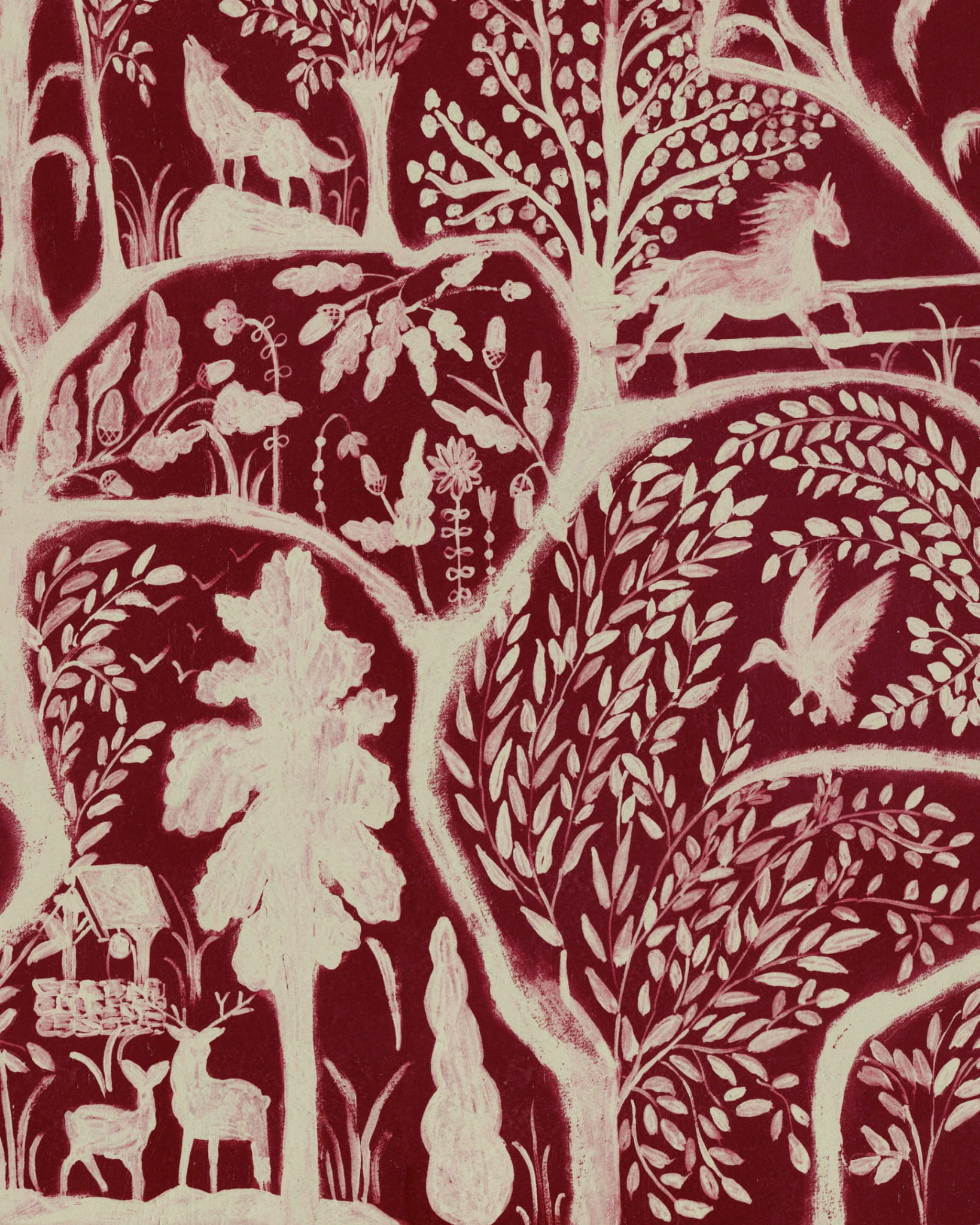 Tapeta The Enchanted Woodland z kolekcji Transylvanian Roots marki Mind The Gap ukazuje siedliska leśne. Wzór wygląda jak ręcznie rysowana ilustracja przyrody. Sprawdzi się w nowoczesnych jak i klasycznych wnętrzach. Okładzina dostępna jest w 2 wariantach kolorystycznych.