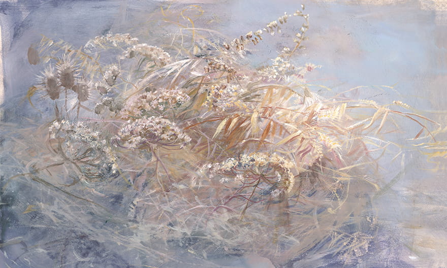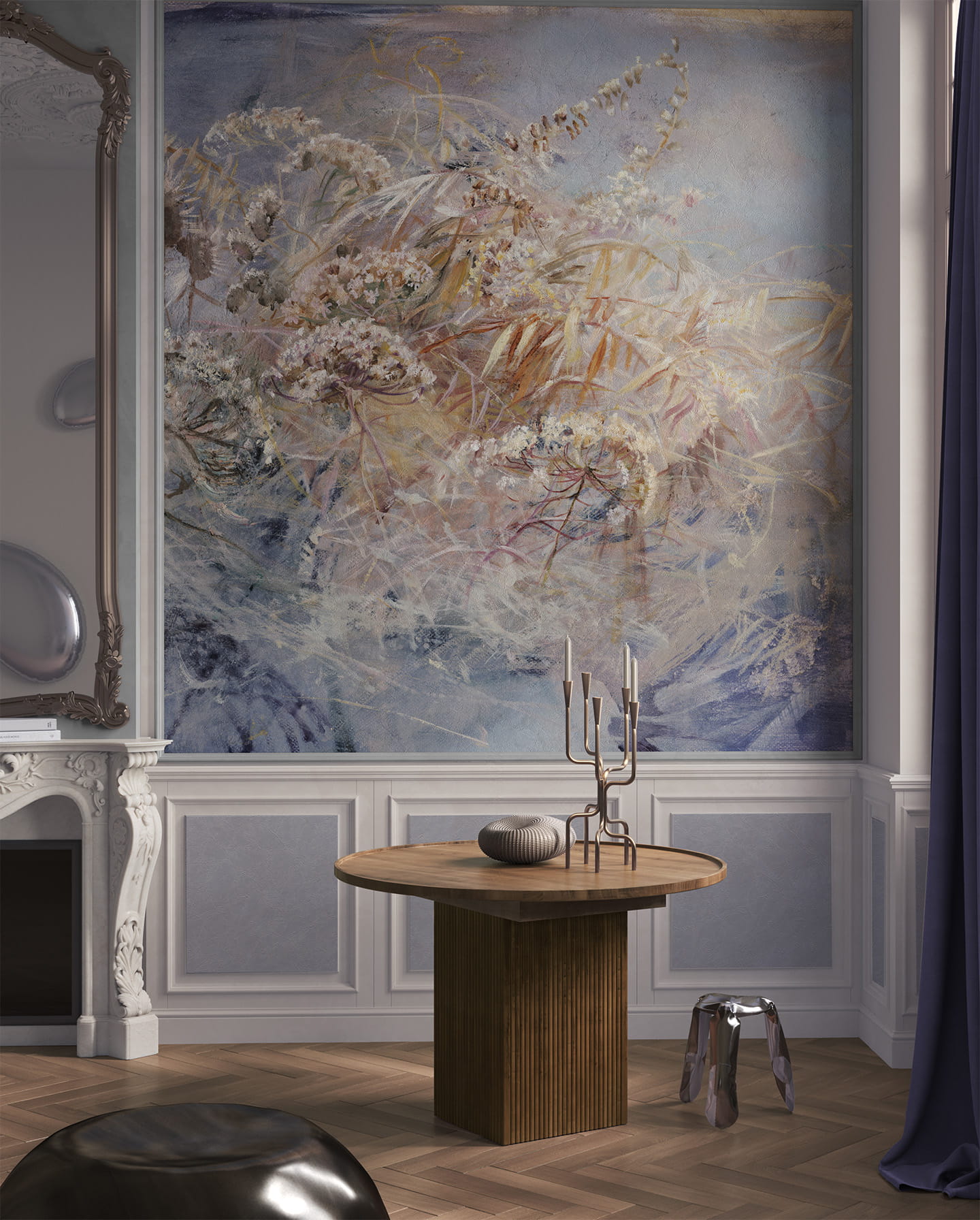 Wonderwall tapeta Holly to wyjątkowy mural, który przenosi do wnętrz lekkość i eteryczność dzikiej roślinności. Pastelowe odcienie błękitu, beżu i bieli podkreślają subtelność wzoru, a delikatne trawy i kwiaty nadają wnętrzu wyjątkowego charakteru. Fototapeta Wonderwall Holly została zaprojektowana, aby harmonijnie komponować się z każdym stylem wnętrza, wnosząc do niego spokój i elegancję. Tapeta jest dostępna w standardowym wymiarze 500 x 300 cm, jednak można zamówić ją na wymiar, dostosowując do nietypowych przestrzeni.