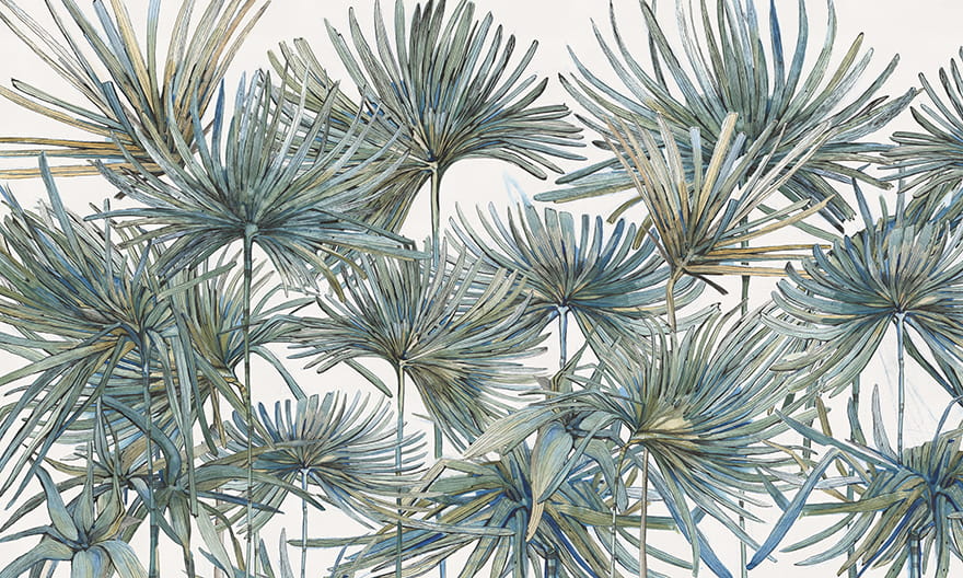 Wonderwall tapeta Komodo to mural, który wprowadza do wnętrza tropikalny klimat dzięki motywowi rozłożystych liści palmowych. Subtelna kolorystyka w odcieniach zieleni, błękitu i beżu nadaje przestrzeni lekkości i naturalności, a realistyczne odwzorowanie detali sprawia, że tapeta staje się prawdziwym dziełem sztuki na ścianie. Fototapeta Wonderwall Komodo została zaprojektowana w standardowym wymiarze 500 x 300 cm, ale może być dostosowana do indywidualnych wymagań, aby perfekcyjnie pasować do każdego wnętrza.