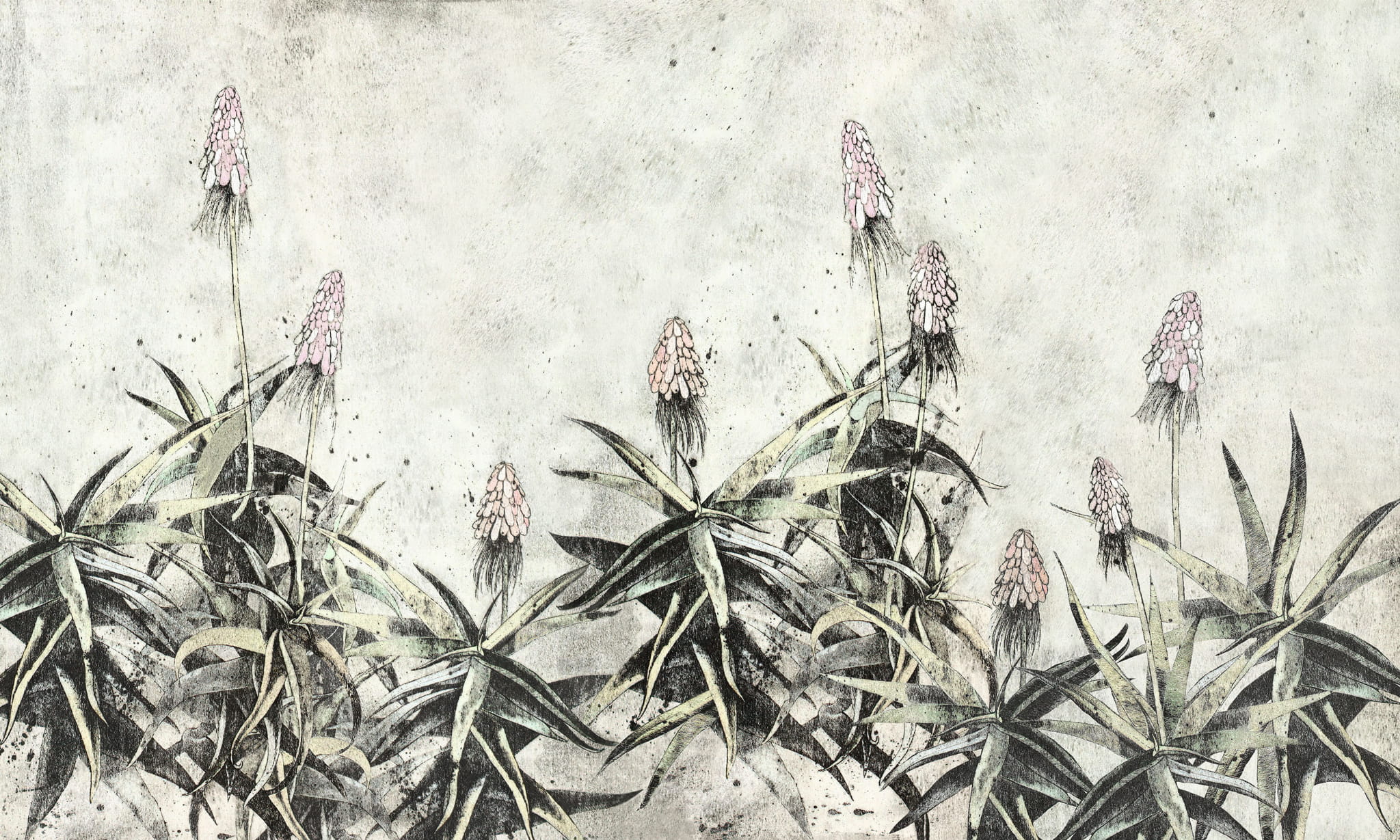 Wonderwall tapeta Agava to artystyczny mural przedstawiający delikatne agawy ozdobione różowymi kwiatami na neutralnym, surowym tle. Połączenie subtelnych kolorów – zieleni, beżu i pastelowego różu – nadaje wnętrzom naturalnego i eleganckiego charakteru. Fototapeta Wonderwall Agava jest dostępna w standardowym wymiarze 500 x 300 cm, ale można ją dostosować do indywidualnych wymiarów ścian, co sprawia, że pasuje do każdej przestrzeni.