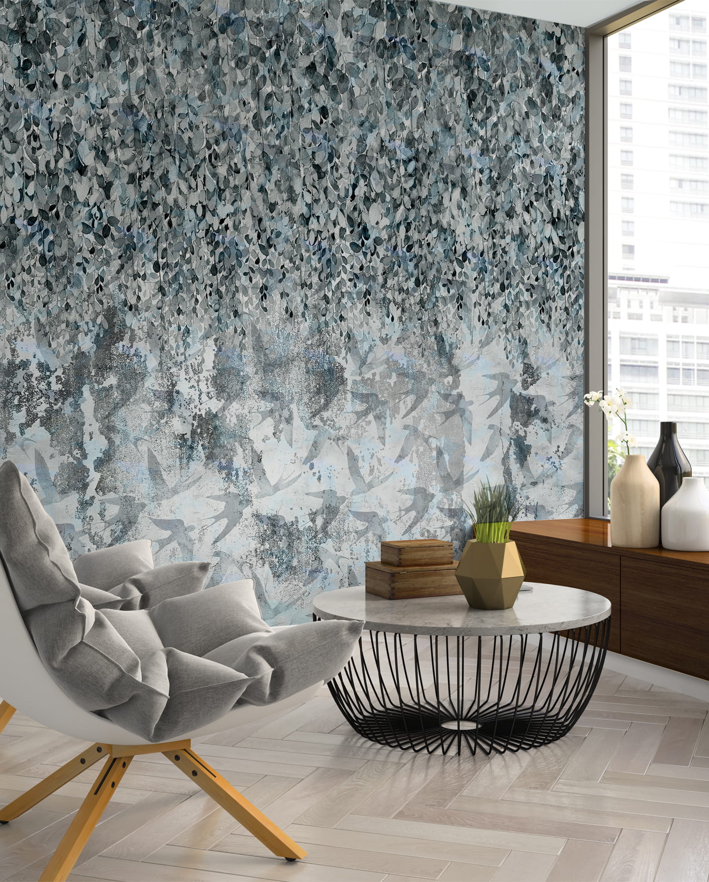 Tapeta Wonderwall Aiola – mural inspirowany lekkością roślin i ptaków