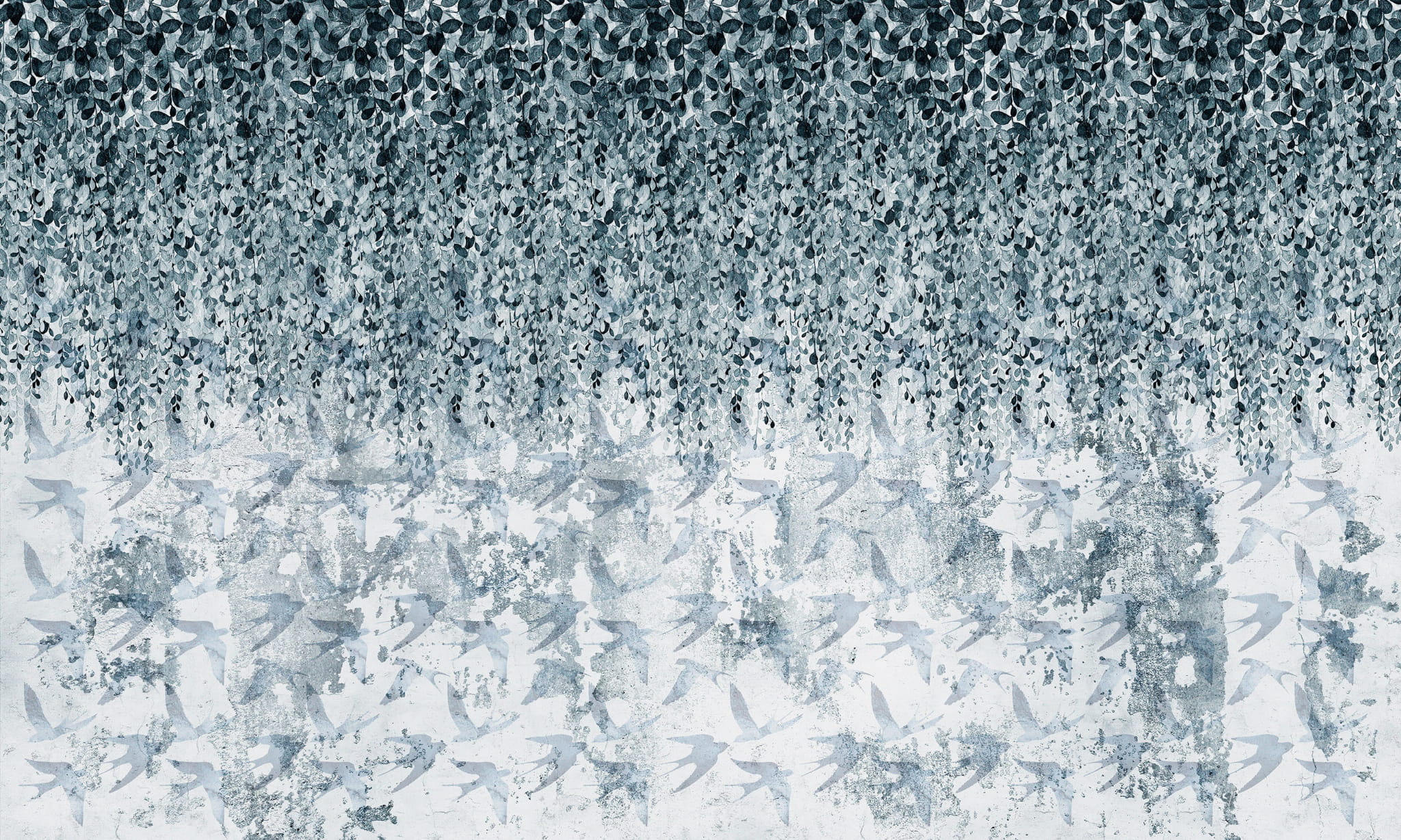 Wonderwall tapeta Aiola to wyjątkowy mural łączący delikatny motyw opadających liści z subtelnym wzorem sylwetek ptaków w locie. Stonowana paleta błękitów i bieli tworzy kompozycję, która wnosi do wnętrza spokój i naturalną harmonię. Fototapeta Wonderwall Aiola dostępna jest w standardowym rozmiarze 500 x 300 cm, ale można ją dopasować do indywidualnych wymagań dzięki opcji personalizacji wymiarów.