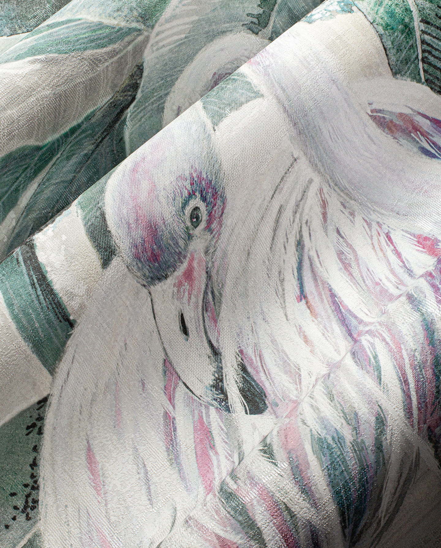 Tapeta Wonderwall Ariel to wyjątkowa propozycja dla miłośników egzotycznych motywów. Delikatne, pastelowe odcienie zieleni, beżu i różu tworzą harmonijną kompozycję, a obecność flamingów nadaje całości elegancji. Ten mural idealnie sprawdzi się w nowoczesnych i klasycznych aranżacjach, dodając wnętrzu lekkości i wyrafinowania.