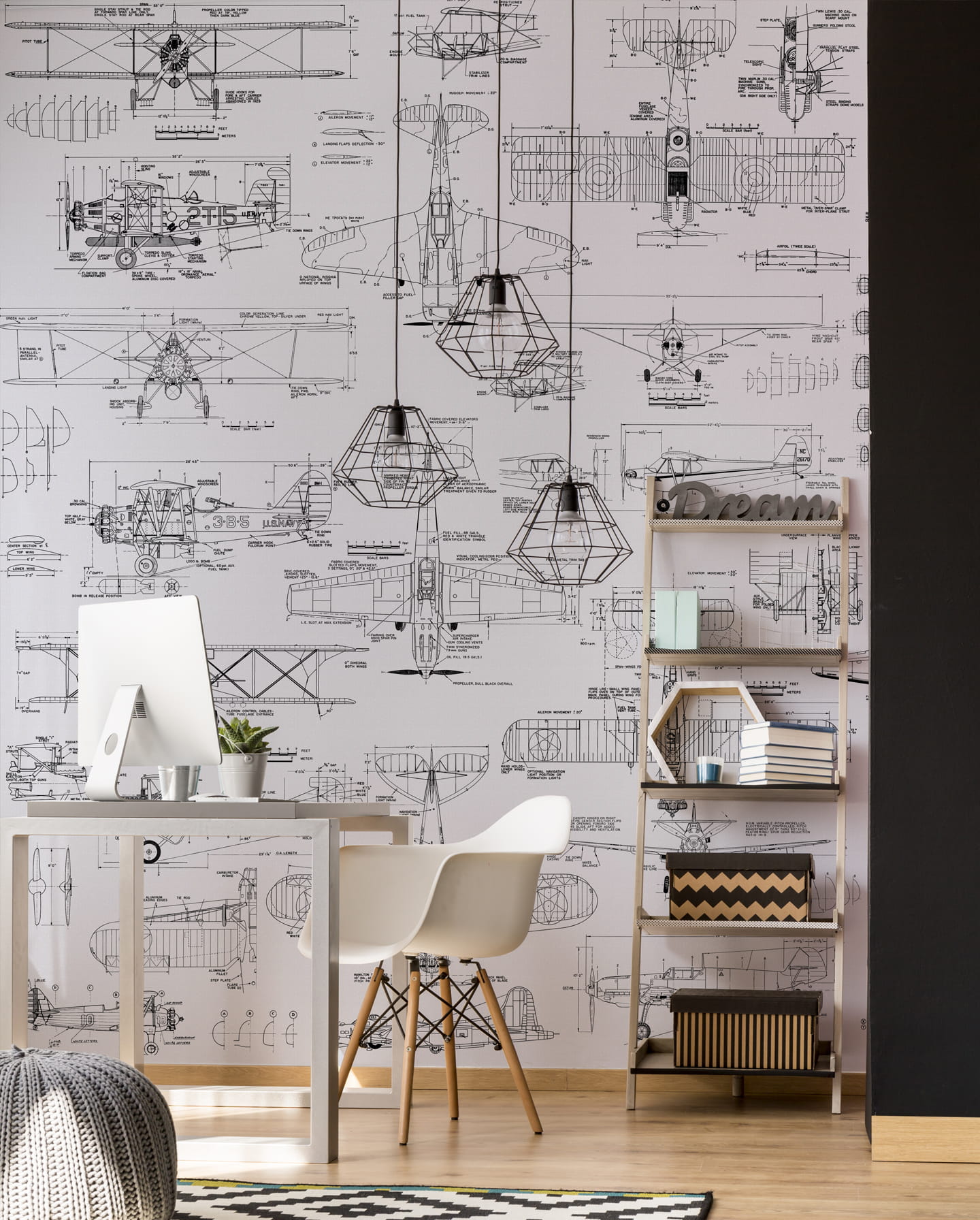 Jeśli szukasz ekskluzywnej tapety na ścianę, tapeta ścienna premium Aviatica doskonale podkreśli indywidualny charakter wnętrza. Szczegółowe rysunki techniczne dodają mu oryginalności i elegancji, sprawiając, że przestrzeń nabiera wyrazistego stylu.