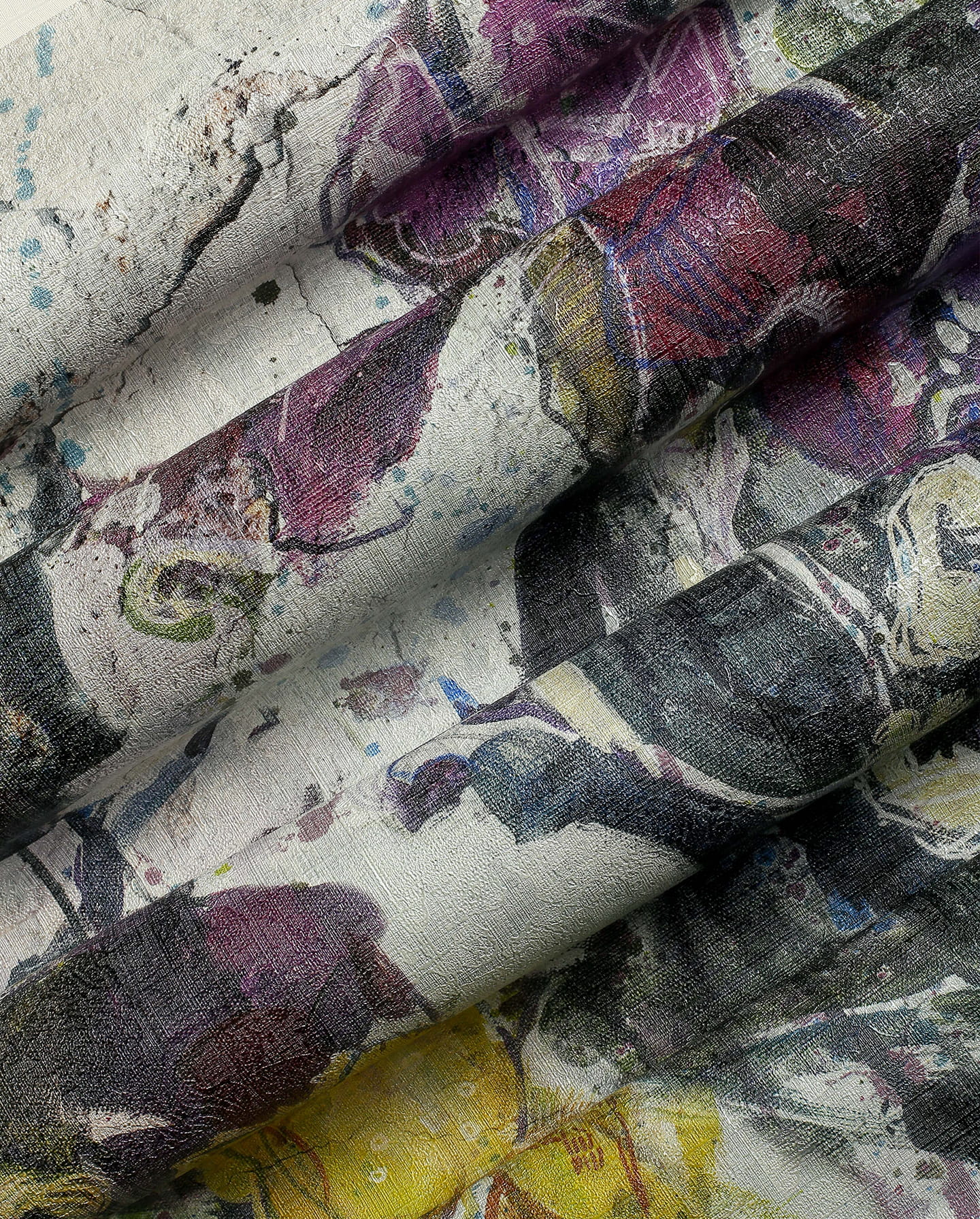 Na zdjęciu widoczne są złożone warstwy kolorów i tekstur, które podkreślają artystyczny charakter murala. Ten florystyczny wzór nadaje się do wnętrz, które potrzebują wyrazistego akcentu, jednocześnie zachowując subtelność i delikatność.