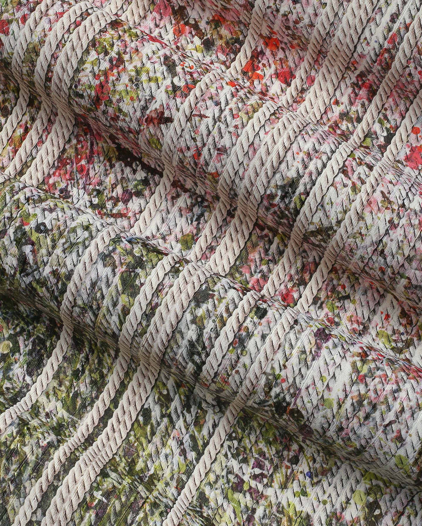 Na zdjęciu widoczna jest struktura tapety Wonderwall Bloom , która dzięki zastosowaniu wysokiej jakości materiałów, doskonale oddaje detale abstrakcyjnych form i żywych kolorów. Połączenie różowych tonacji z zielenią i bielą sprawia, że tapeta ta dodaje wnętrzom świeżości i energetycznego charakteru.