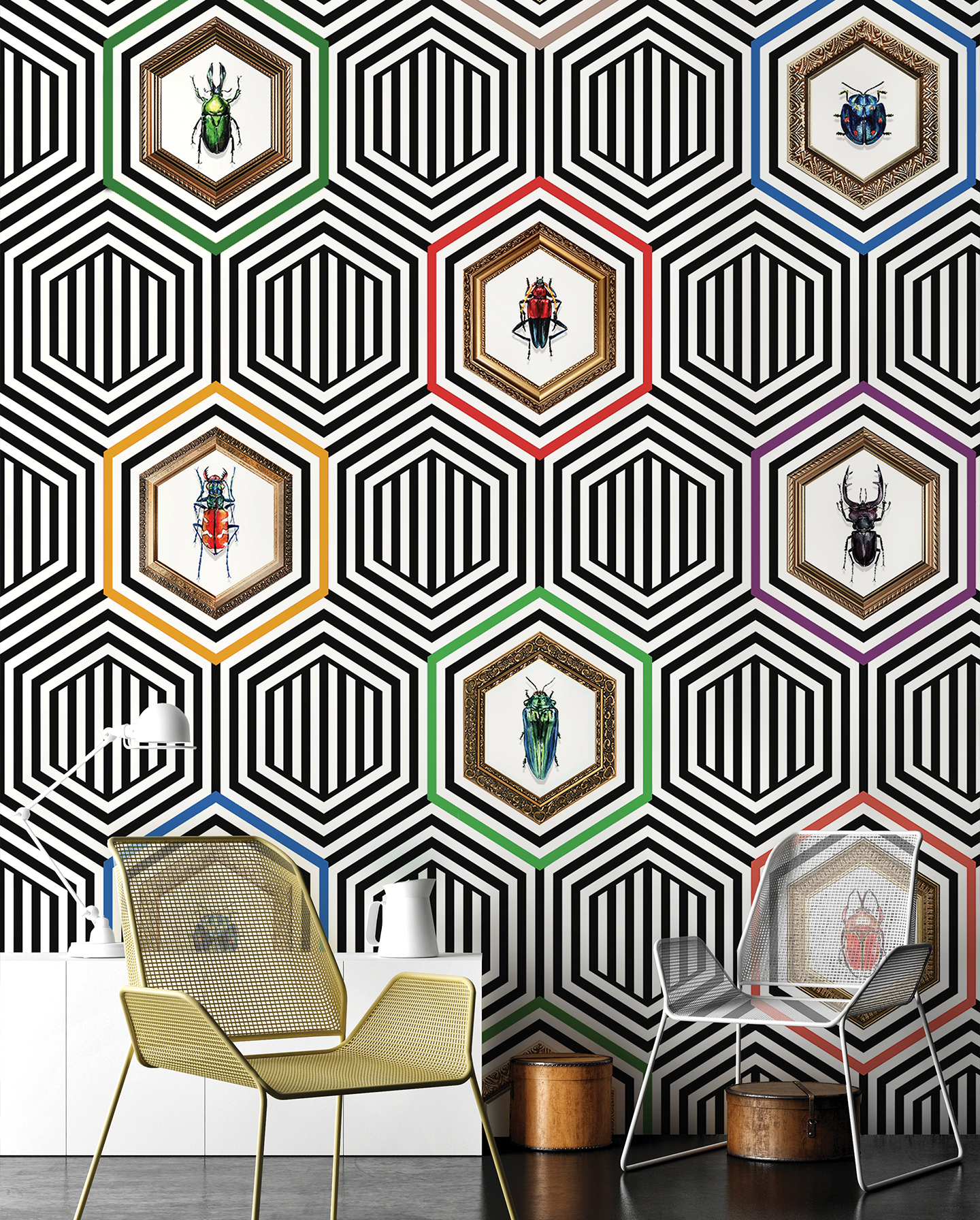 Coleoptera to nie tylko wzór, to manifestacja nowoczesnego podejścia do aranżacji wnętrz. To dekoracja, która zachwyca nieoczywistym połączeniem motywów inspirowanych owadami i geometrycznym tłem. Taka kompozycja jest idealnym wyborem dla tych, którzy pragną wyrazić swoją indywidualność poprzez sztukę. Tapeta ta sprawdzi się w loftach, nowoczesnych mieszkaniach czy biurach – wszędzie tam, gdzie poszukuje się niebanalnych rozwiązań dekoracyjnych.