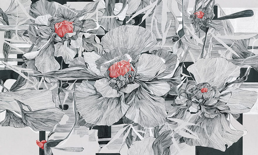 Grafika Wonderwall Cornelia 35 0308 01 to wyrafinowana tapeta, która łączy w sobie delikatność natury i nowoczesny minimalizm. Duże, rozłożyste kwiaty w odcieniach szarości ożywione są przez subtelne, czerwone akcenty pąków, co nadaje całej kompozycji elegancji i artystycznego wyrazu. To wyjątkowa dekoracja ścienna, która wnosi do wnętrza harmonię, a zarazem przyciąga wzrok swoją oryginalnością. Wonderwall Cornelia 35 0308 01 to idealny wybór dla osób, które poszukują subtelnego, ale jednocześnie wyrazistego motywu kwiatowego do swoich przestrzeni.