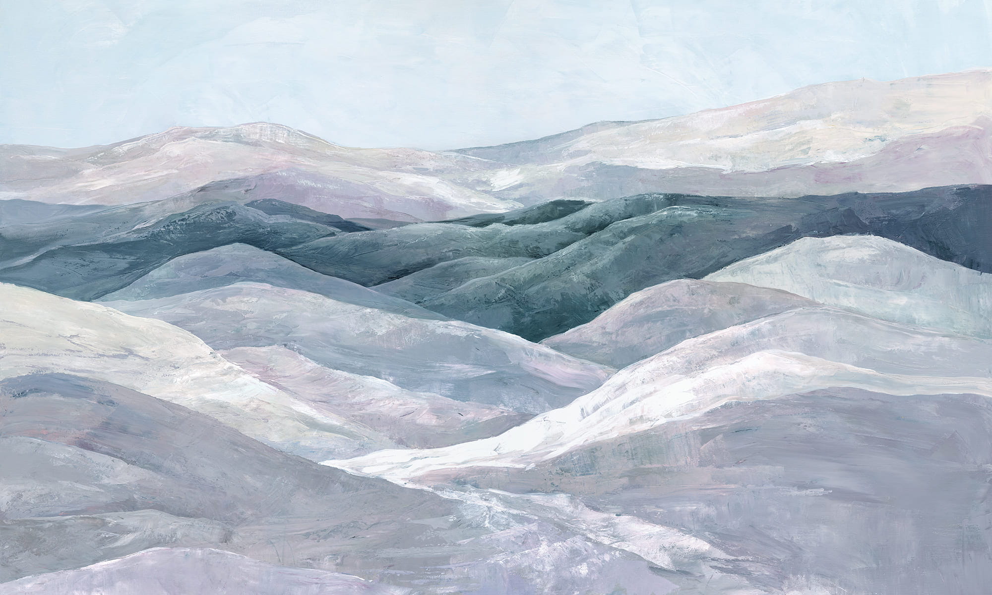 Tapeta Wonderwall Hills – subtelny krajobraz wzgórz w chłodnych odcieniach