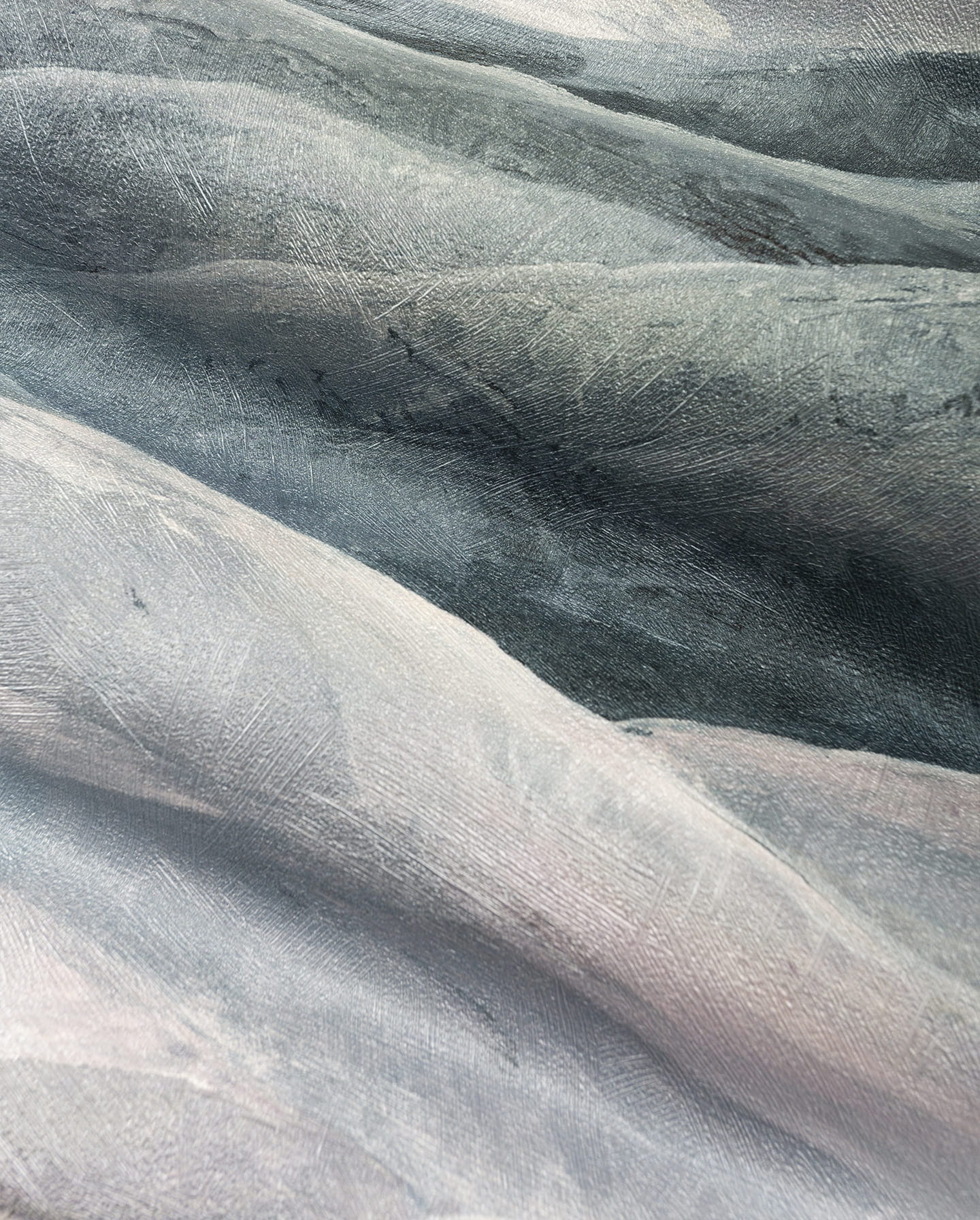 Tapeta Wonderwall Hills to malarski mural przedstawiający spokojny pejzaż wzgórz w odcieniach szarości, błękitu i delikatnego fioletu. Wzór oddaje atmosferę harmonii i ciszy, idealnie pasując do wnętrz, które mają sprzyjać relaksowi. Łagodnie przenikające się barwy tworzą efekt głębi, dzięki czemu tapeta optycznie powiększa przestrzeń. To doskonały wybór jako tapeta na ściany do sypialni, salonu czy biura, nadając wnętrzu elegancki i minimalistyczny charakter.