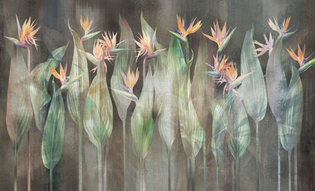Tapeta Sterlicia to artystyczna interpretacja kwiatów zwanych „rajskimi ptakami”, ujęta w delikatnej poświacie, która podkreśla ich egzotyczny urok. Warstwowa technika i subtelne przejścia kolorów tworzą efekt głębi i naturalnego blasku, jakby rośliny były oświetlone miękkim światłem o poranku. Ten mural to połączenie natury, światła i wyrafinowania – idealne do wnętrz, które mają emanować spokojem, lekkością i wyjątkowym charakterem. Tapeta Sterlicia to doskonały wybór dla miłośników przyrody i wysmakowanego designu.